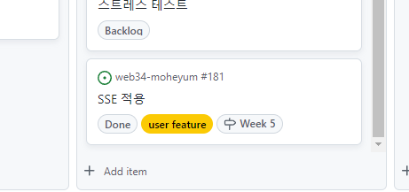 이슈 역시 그렇다. 앞의 백로그 문제와도 연결되지만, 하나의 백로그를 이슈화하고, 이를 위해 프론트엔드 - 백엔드가 구현할 기능들을 또 작은 이슈로 나누었다. 이 작은 이슈들이 백로그 이슈를 참조하도록 하자고 했지만 별로 직관적이진 않았고, Github Project의 사용 미숙으로 작은 이슈가 백로그에 올라가버리는 등의 문제가 있기도 했다. 다음엔 꼭 Jira, Trello라던지, 최소한 노션으로 정리하던가 하는게 좋을 것 같다.